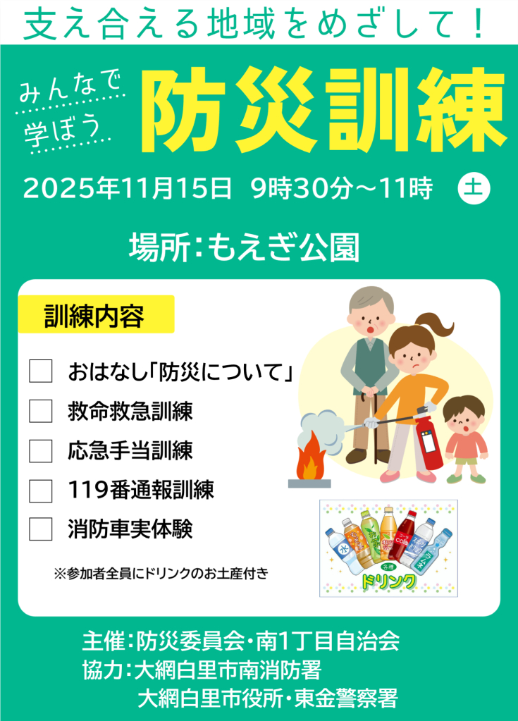11月15日(土曜日)防災訓練のお知らせ は