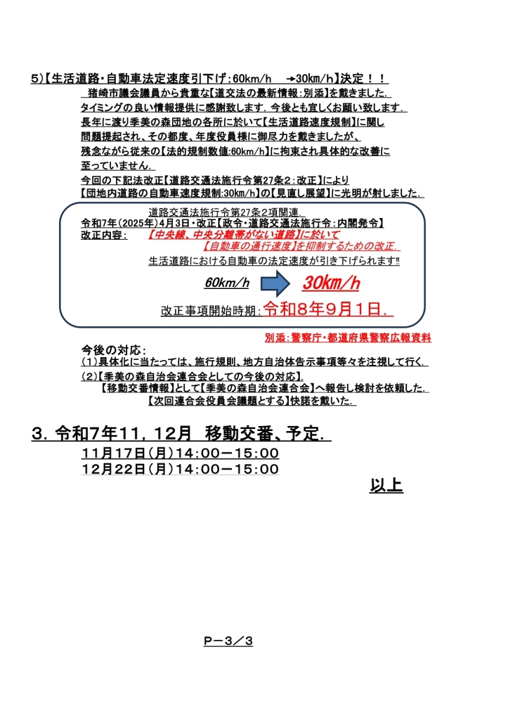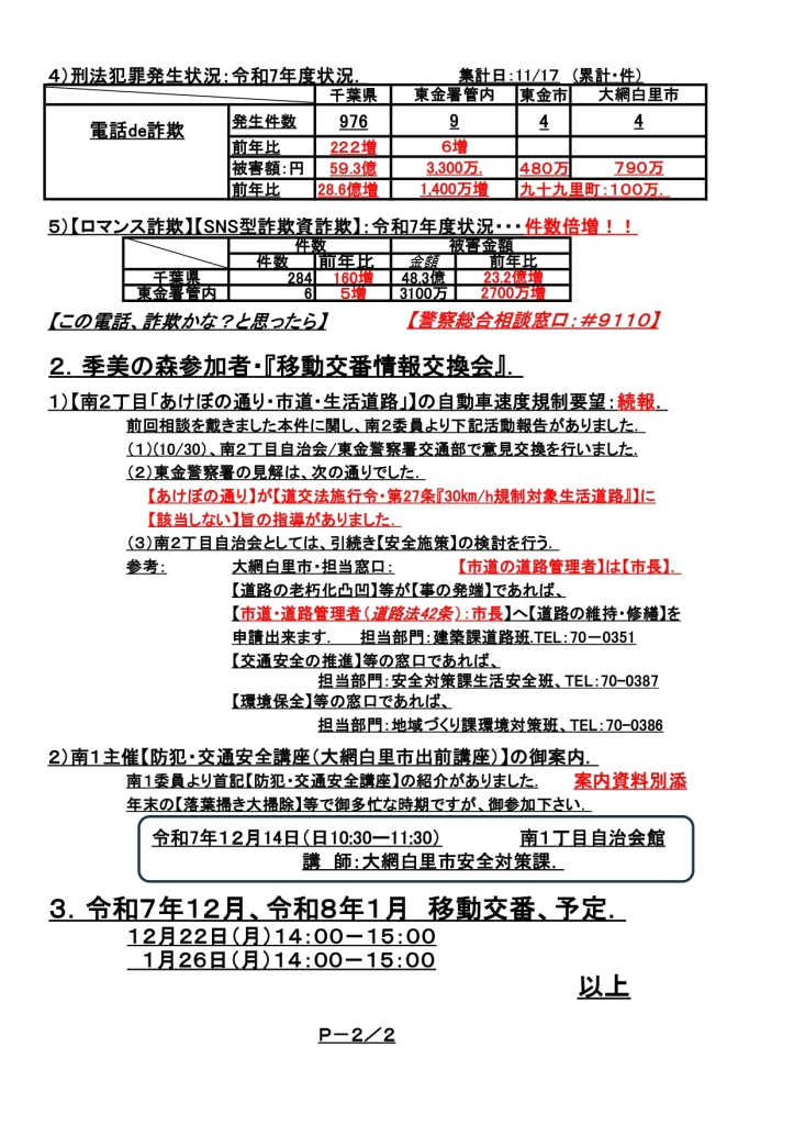 (10/27)東金警察署移動交番(季美の森)・参加報告を住民の皆様へ欄にアップいたしました。 は