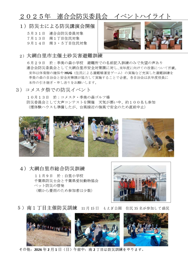 「2025年 連合会防災委員会 イベントハイライト」を住民の皆様へ欄にアップいたしました。