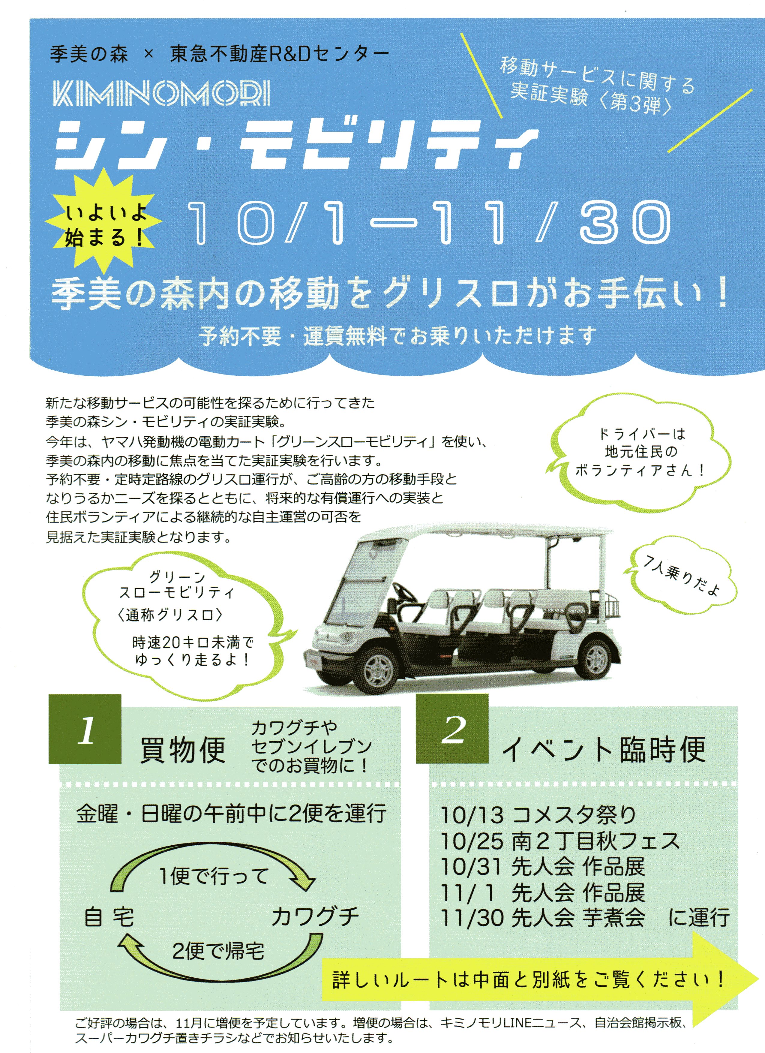 季美の森内の移動をグリスロがお手伝い! 予約不要・運賃無料でおのりいただけます。 は