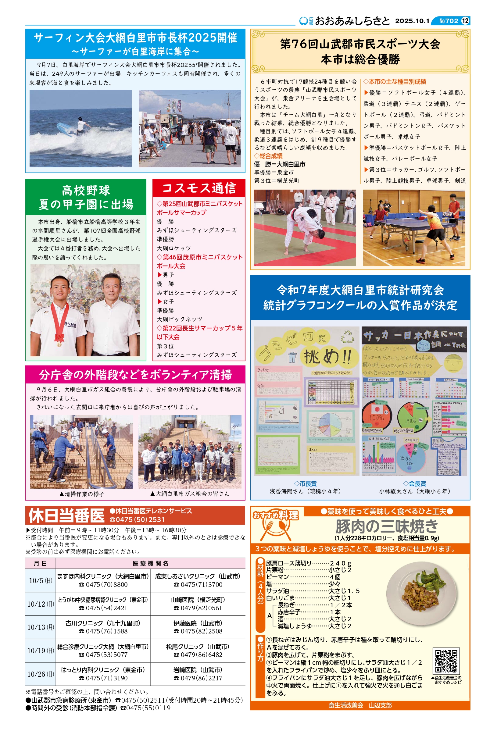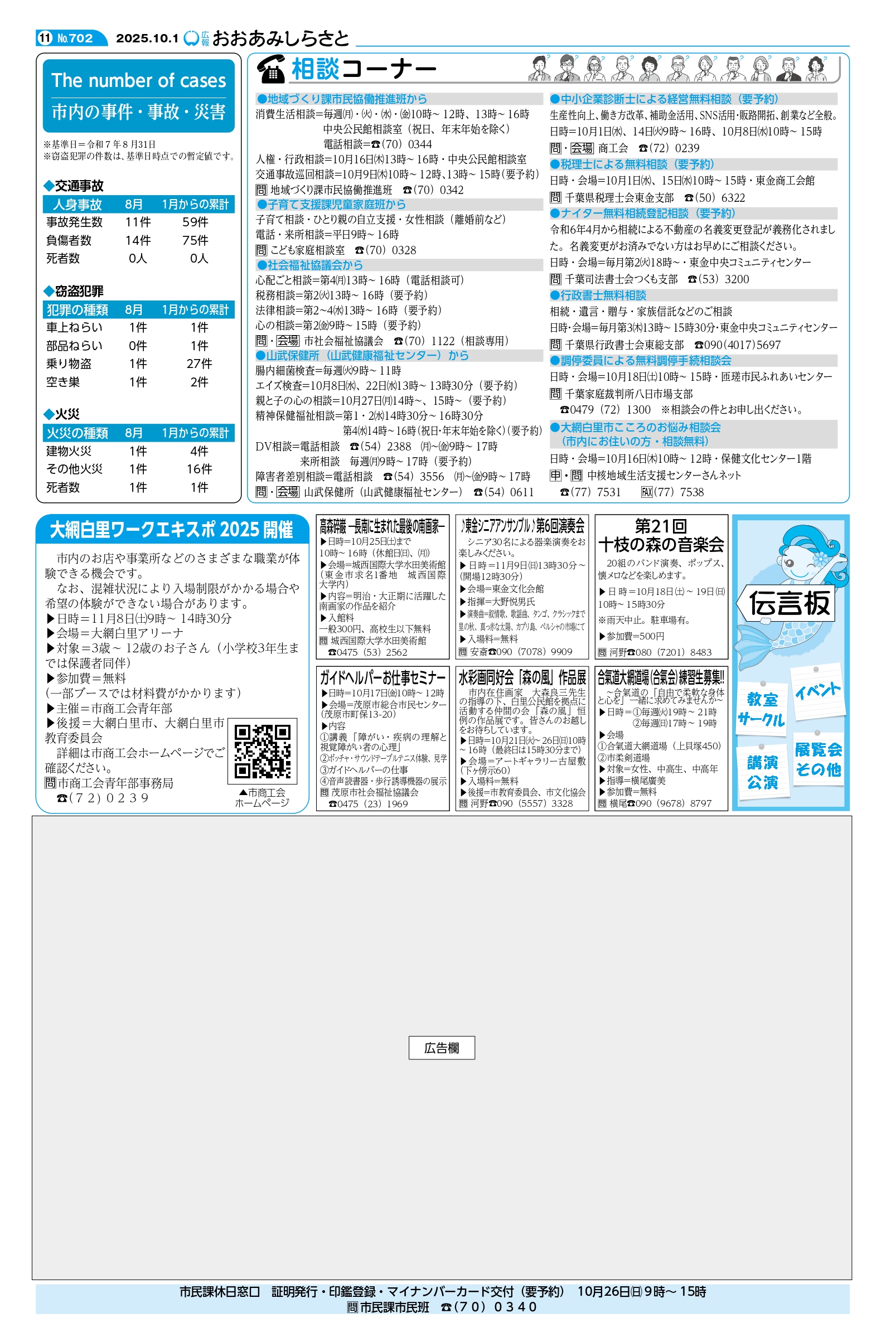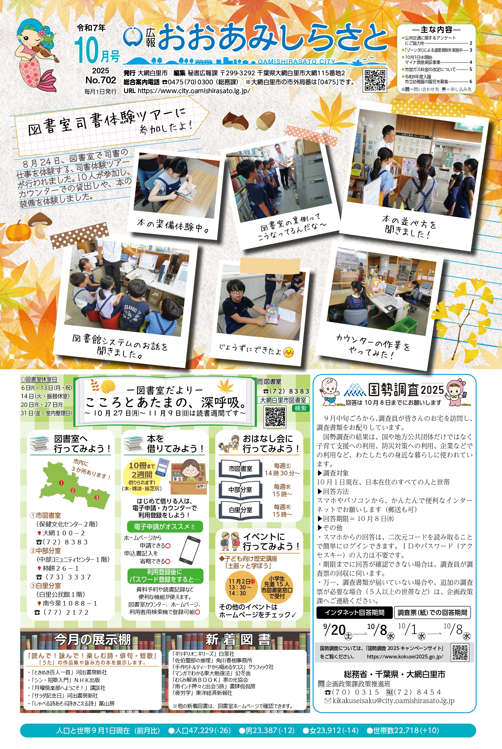 広報 おおあみしらさと 10月 発行元 大網白里市秘書広報課 は
