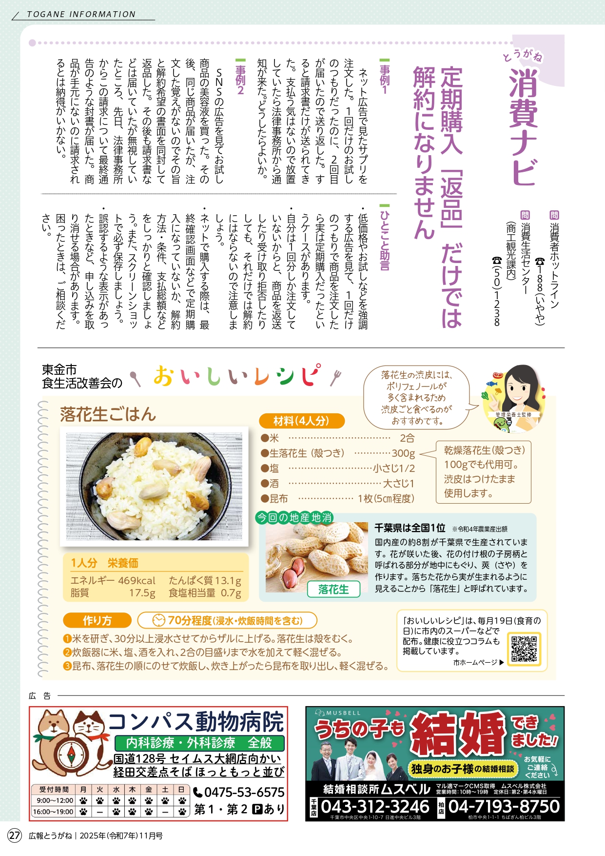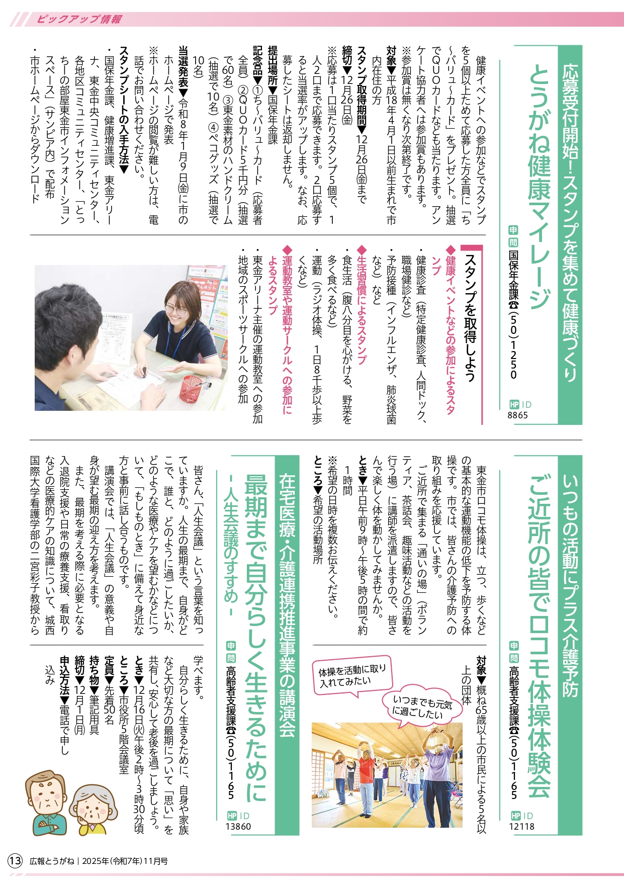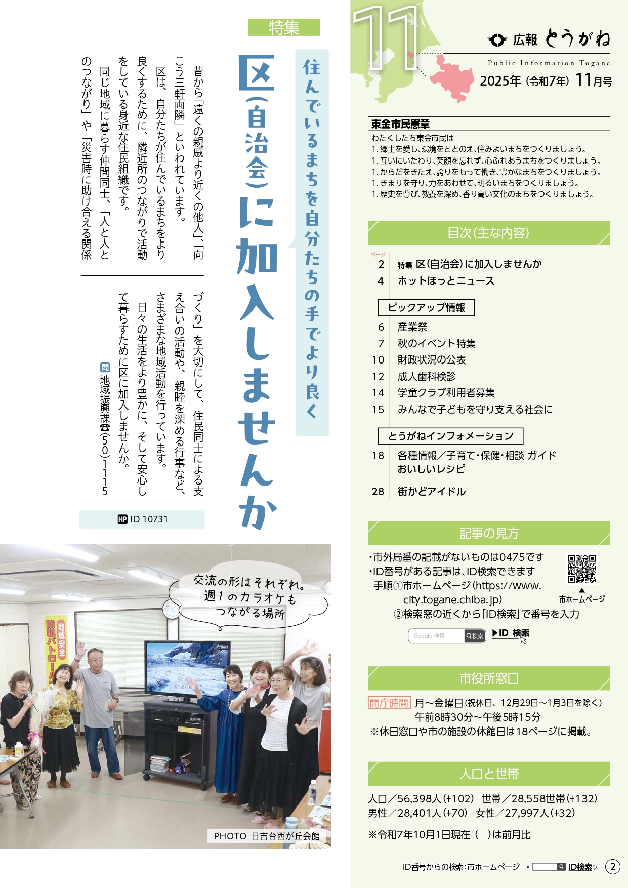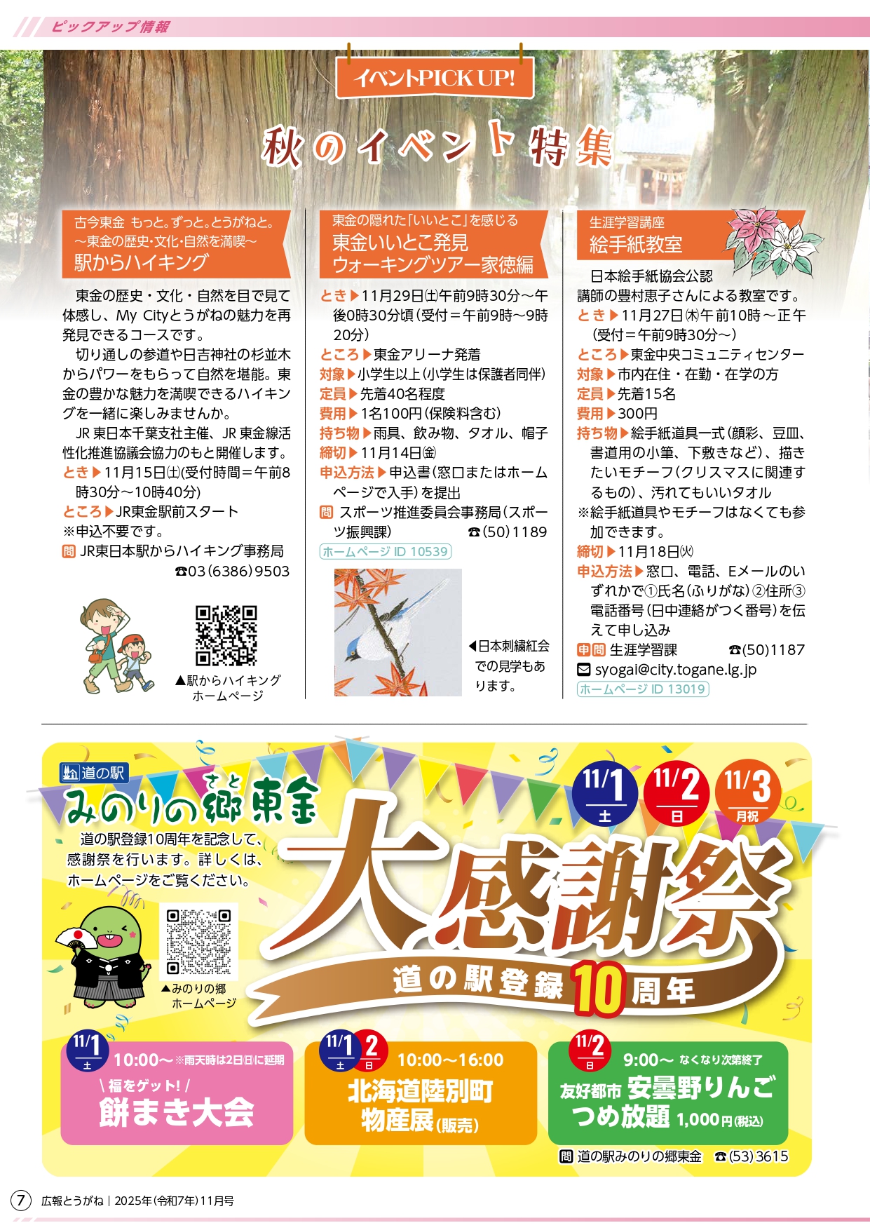 広報 「とうがね」11月号 発行元 東金市企画政策部秘書広報課広報広聴係