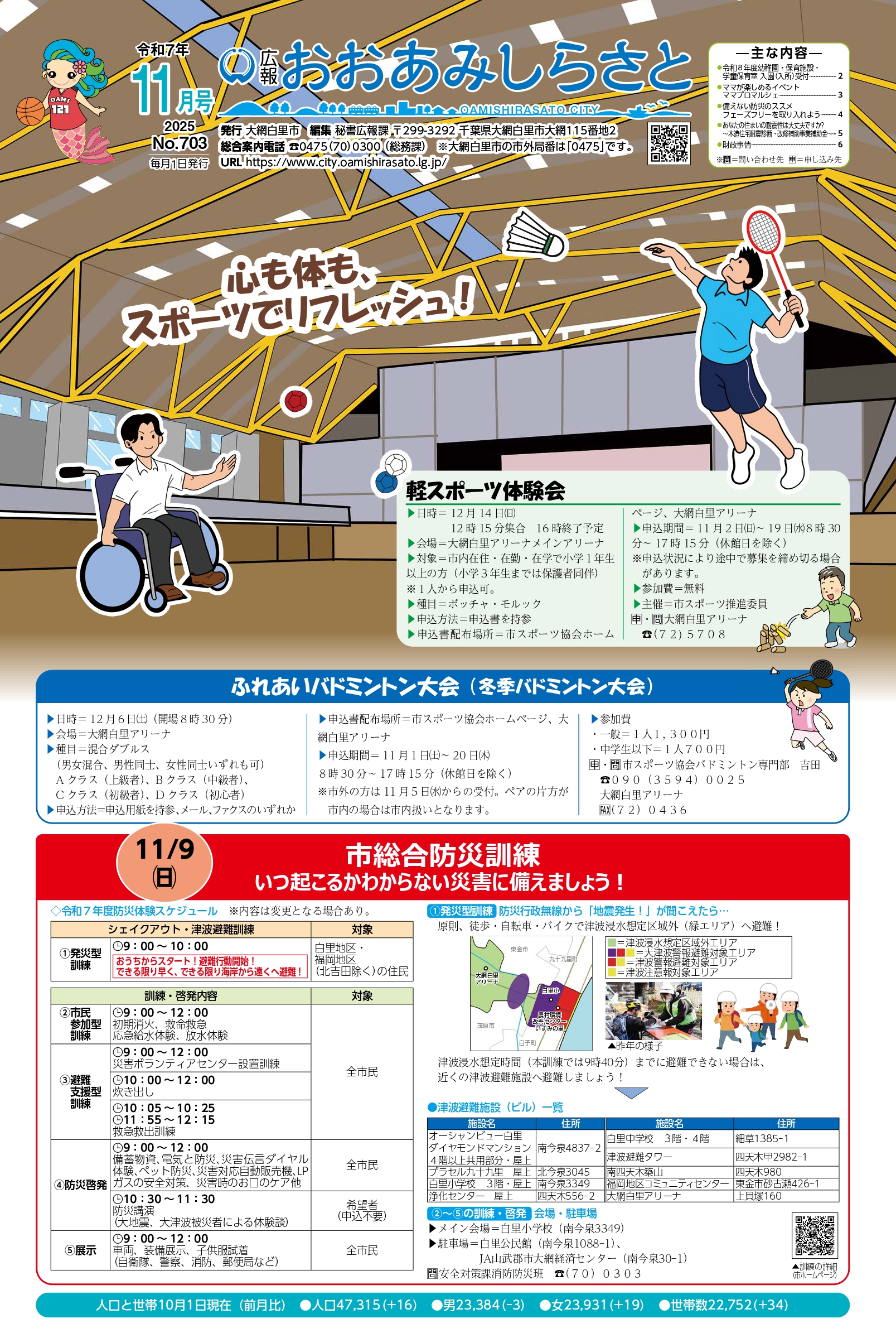 広報 「おおあみしらさと」発行元 大網白里市秘書広報課