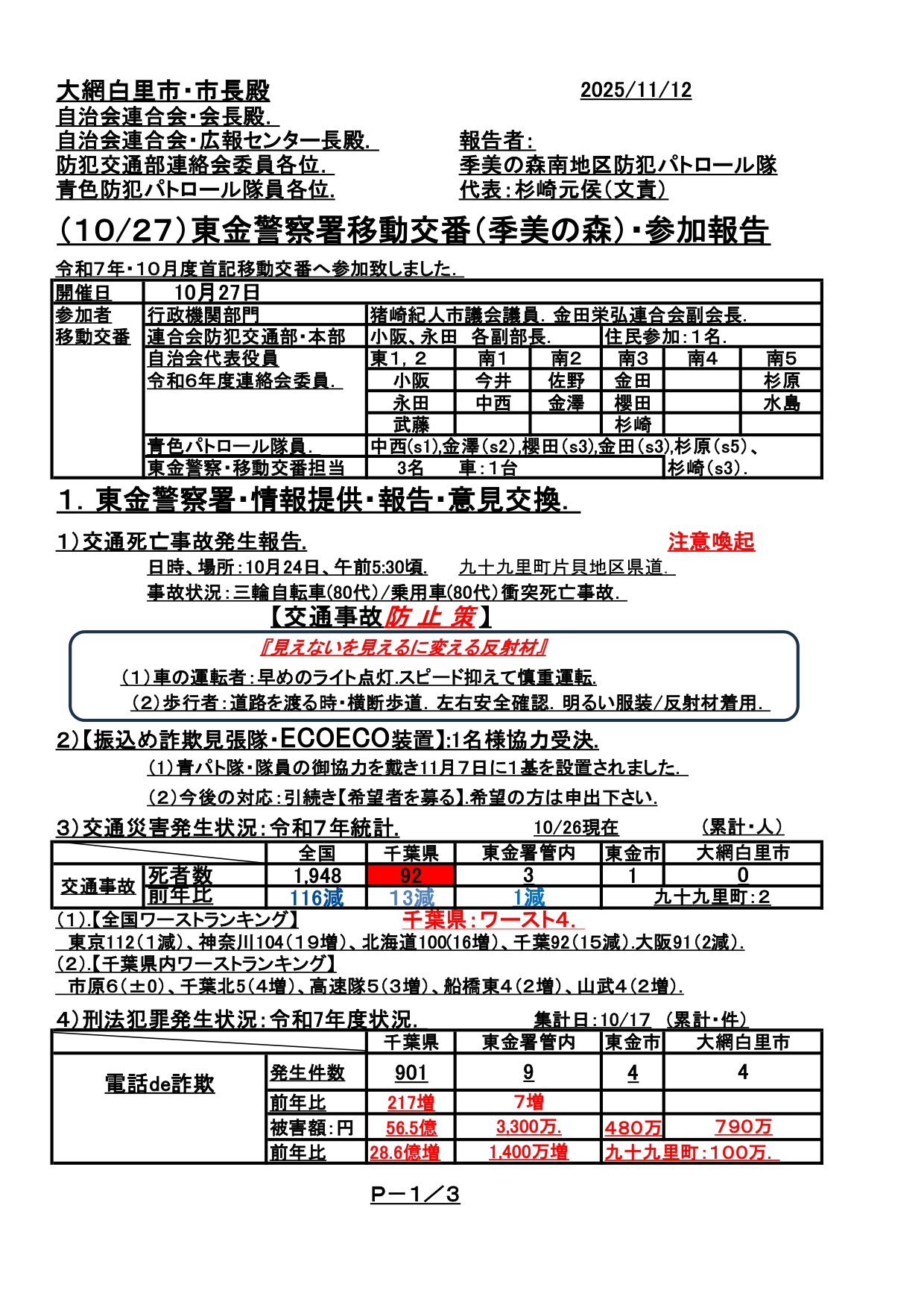 (10/27)東金警察署移動交番(季美の森)・参加報告 は