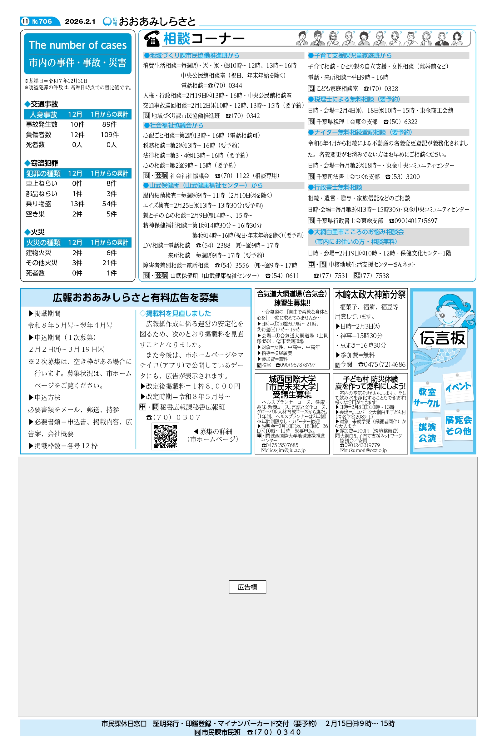 広報 おおあみしらさと「2月号」発行元 大網白里市秘書広報課 は