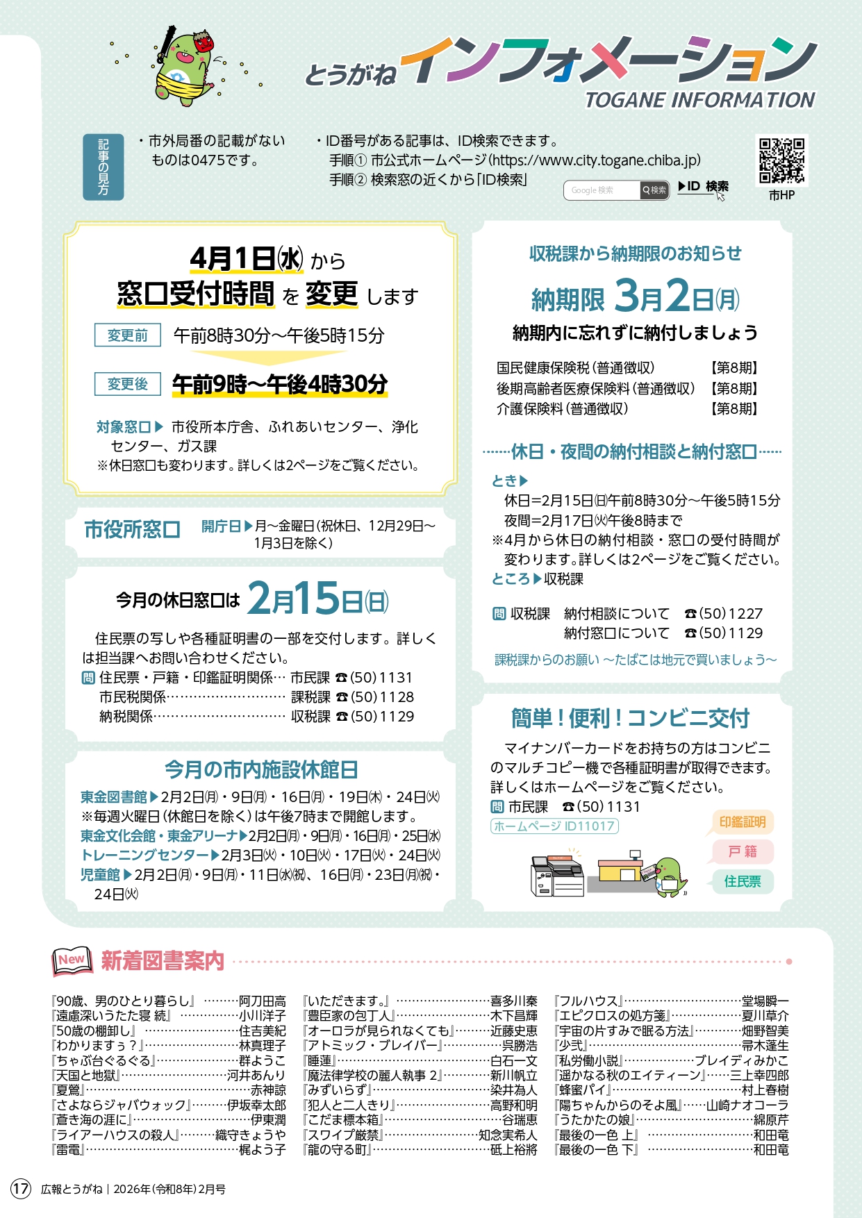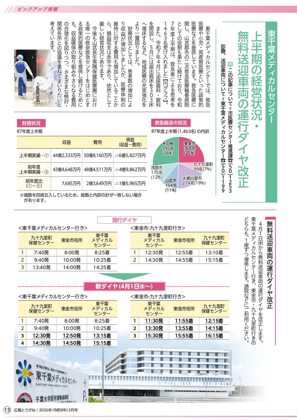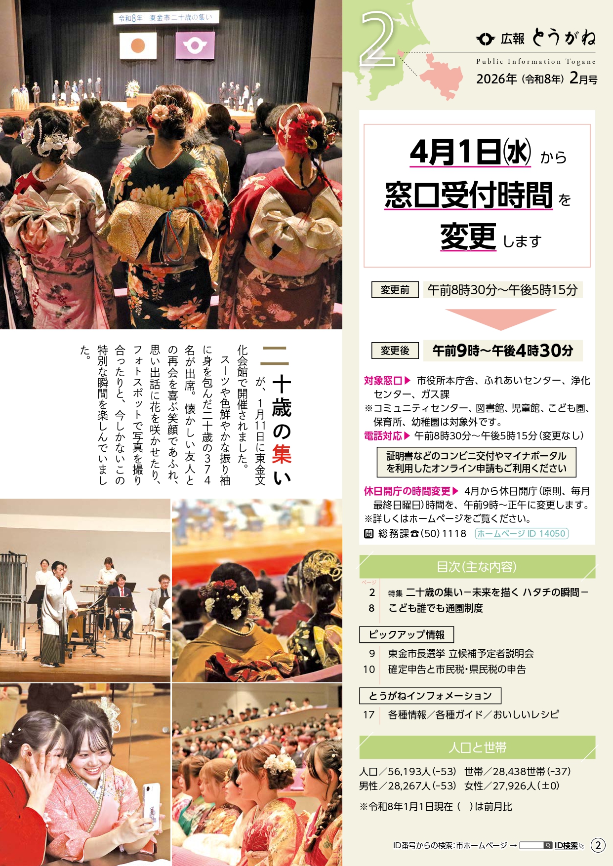 広報 「とうがね」2月号 発行元 東金市企画政策部秘書広報課広報広聴係