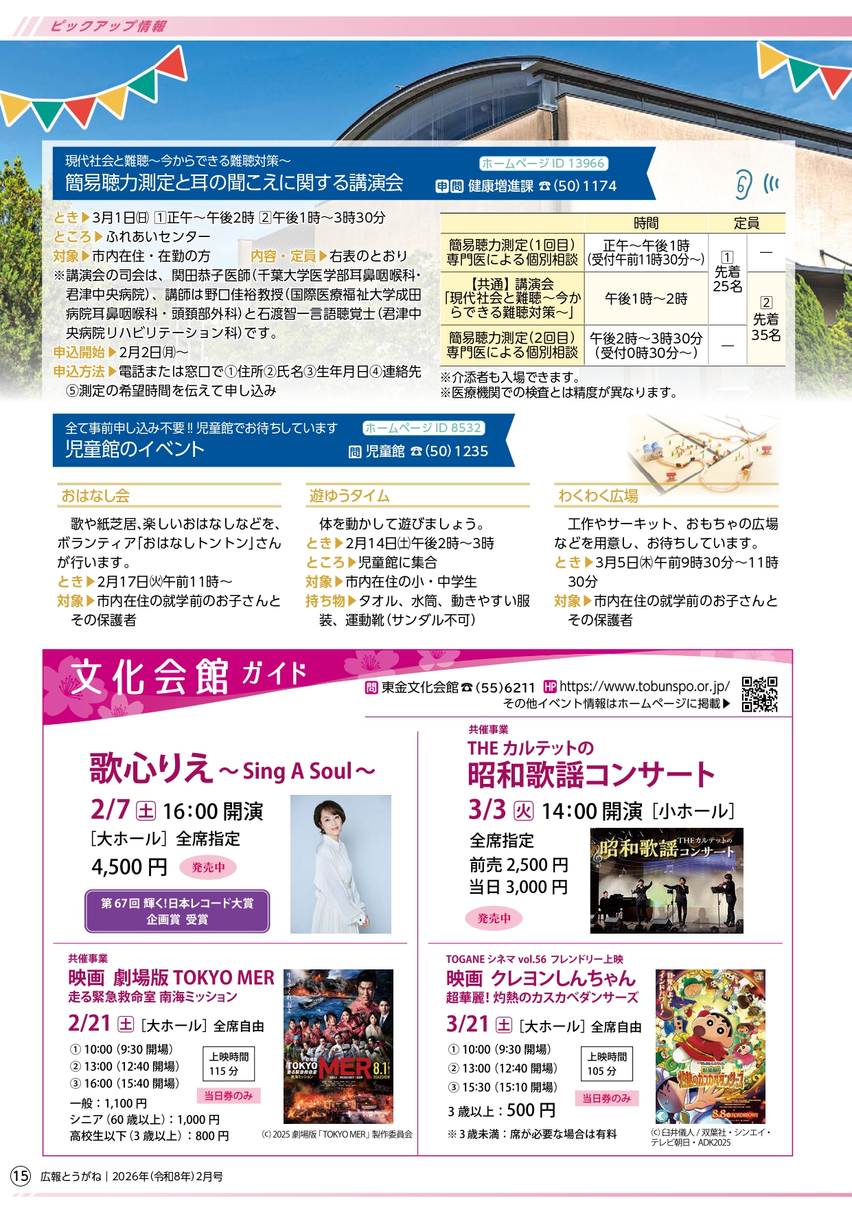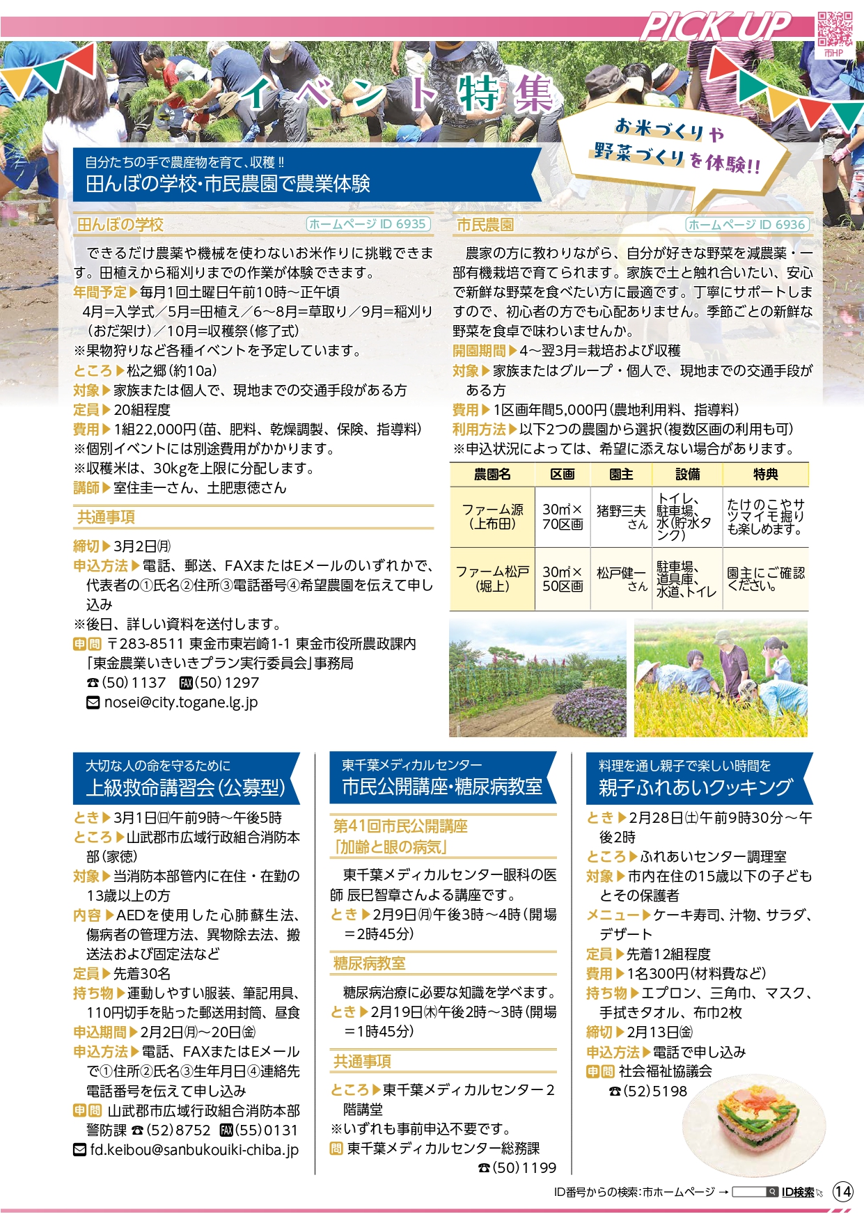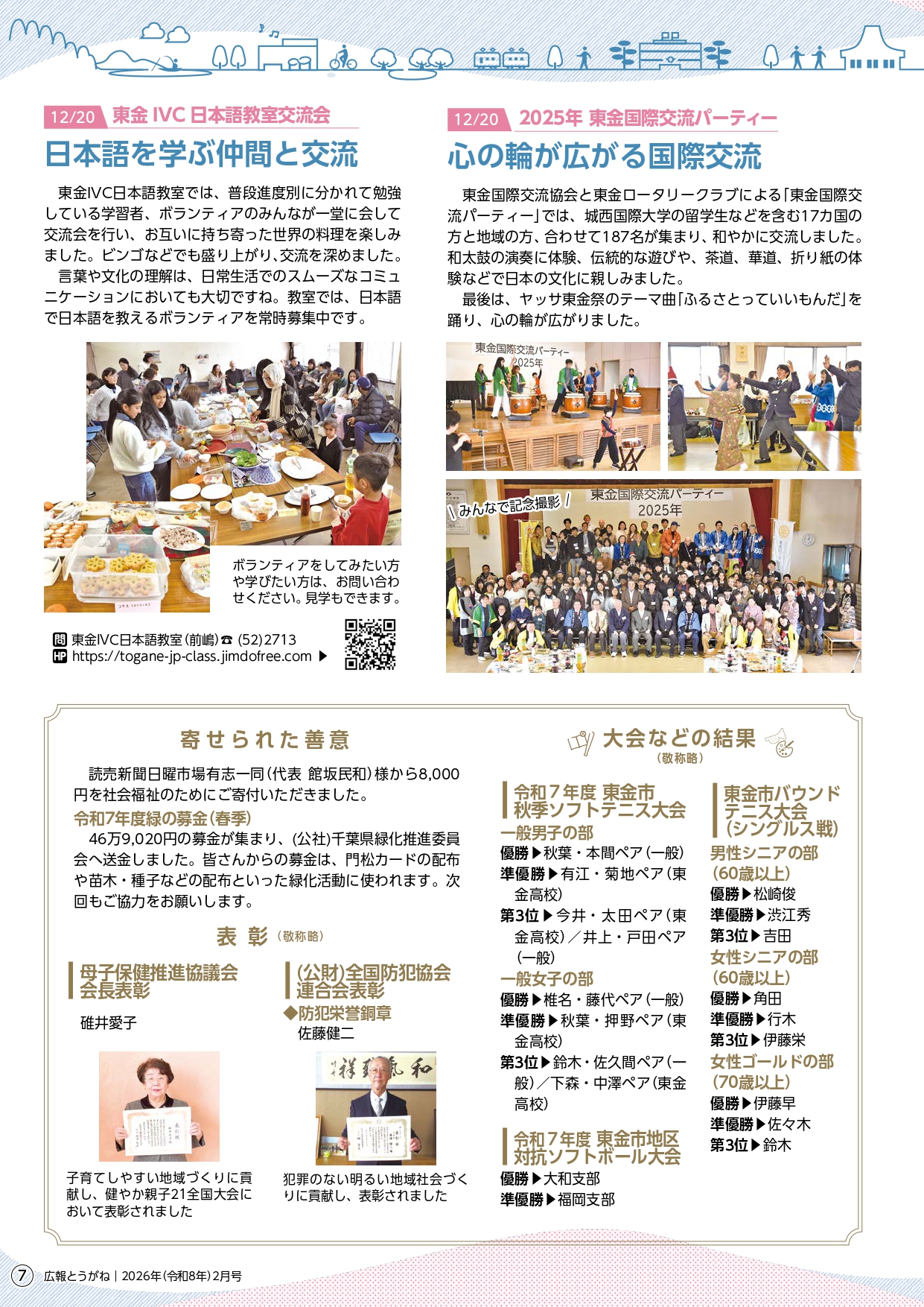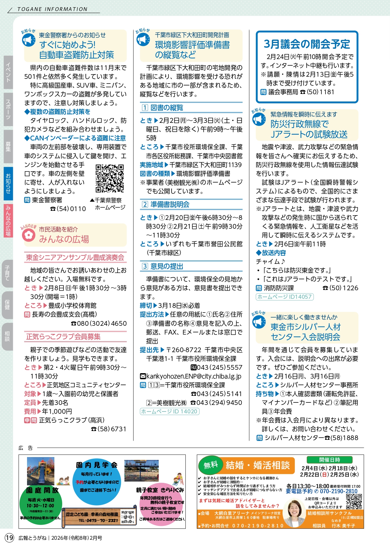 広報 「とうがね」2月号 発行元 東金市企画政策部秘書広報課広報広聴係 は
