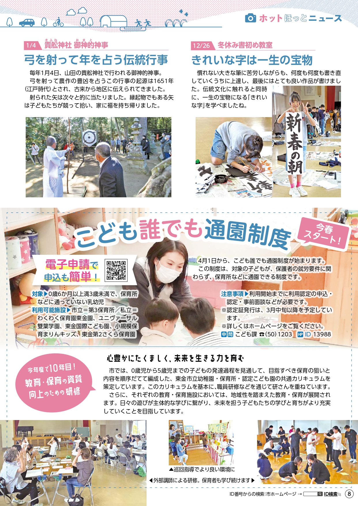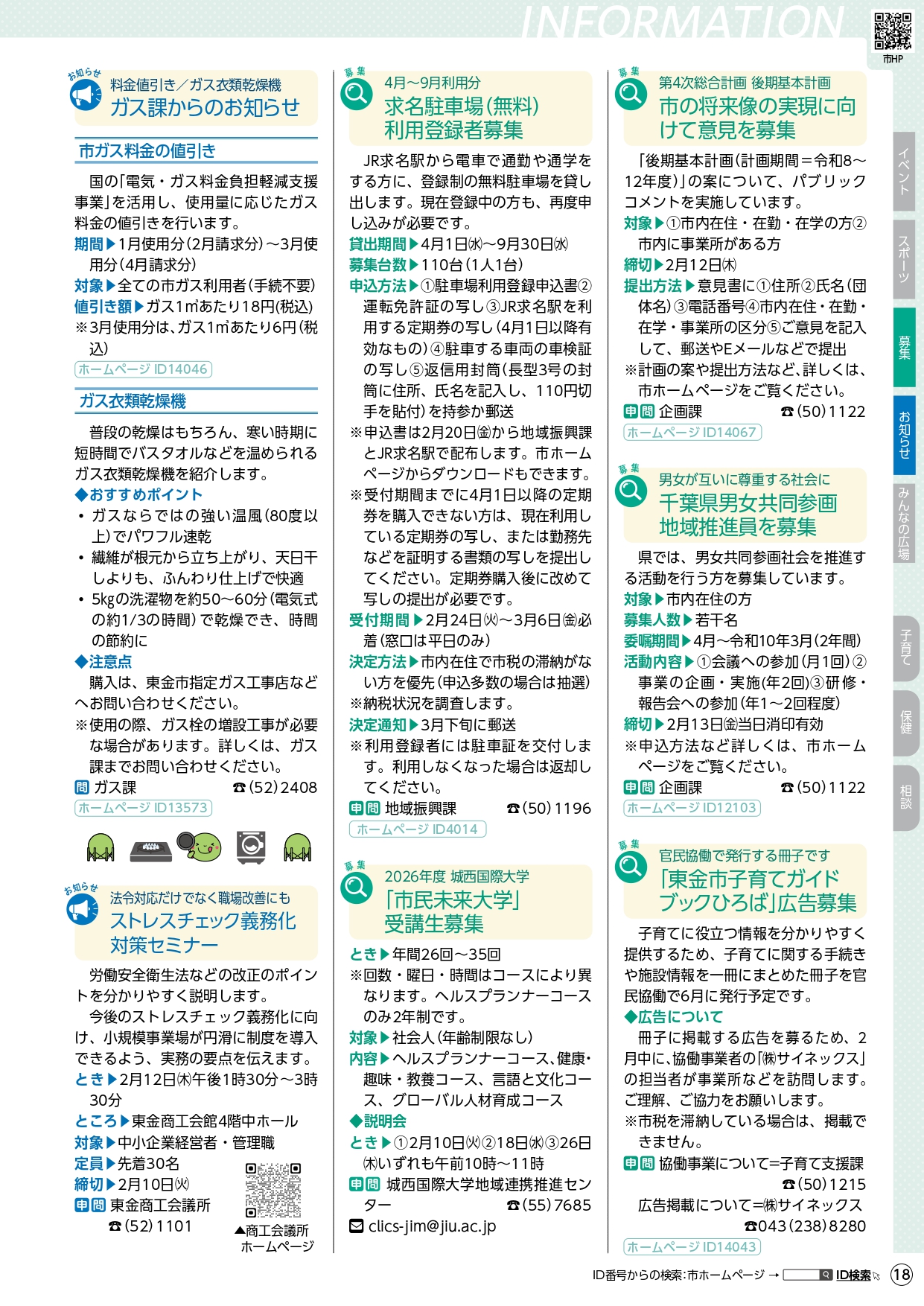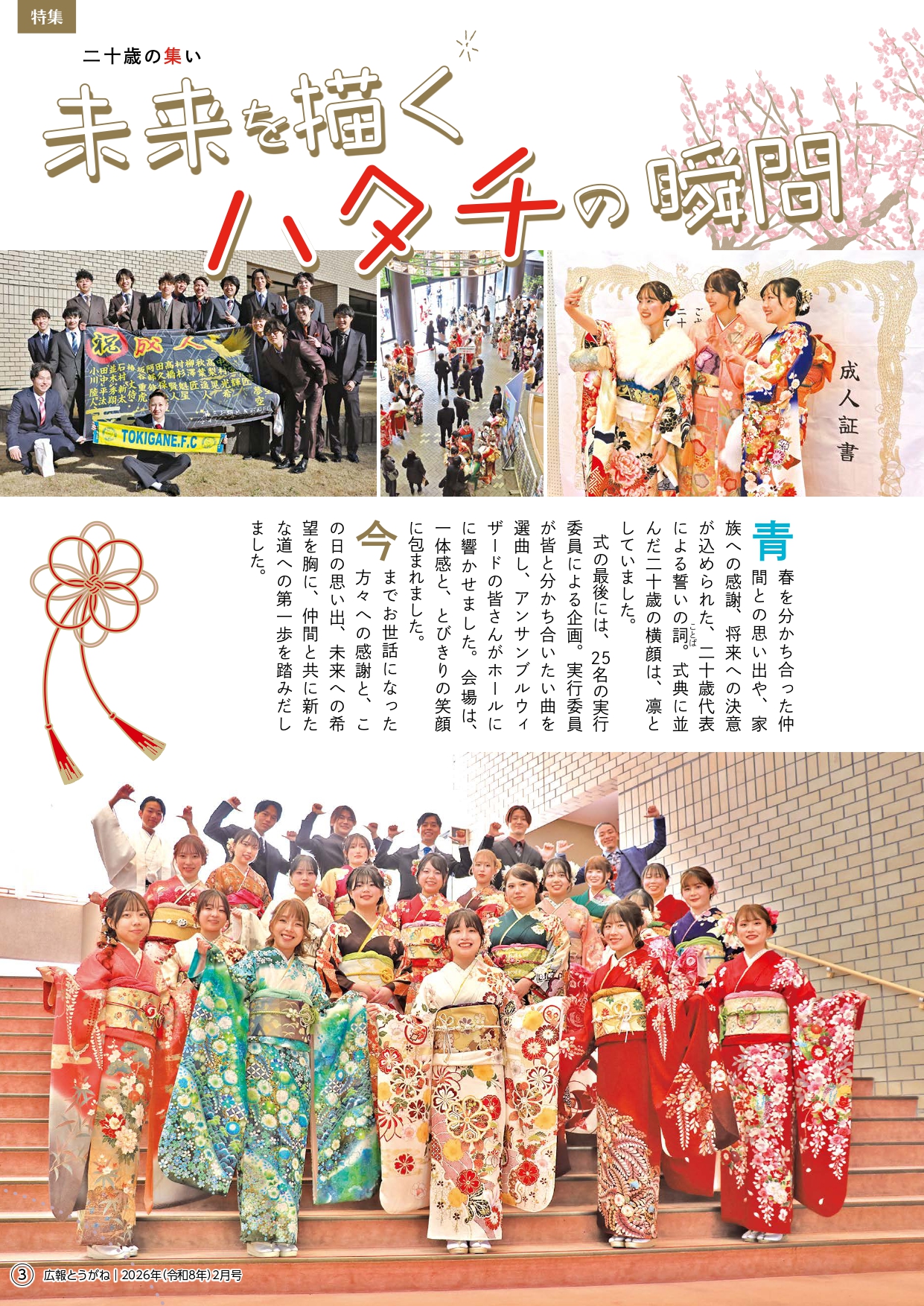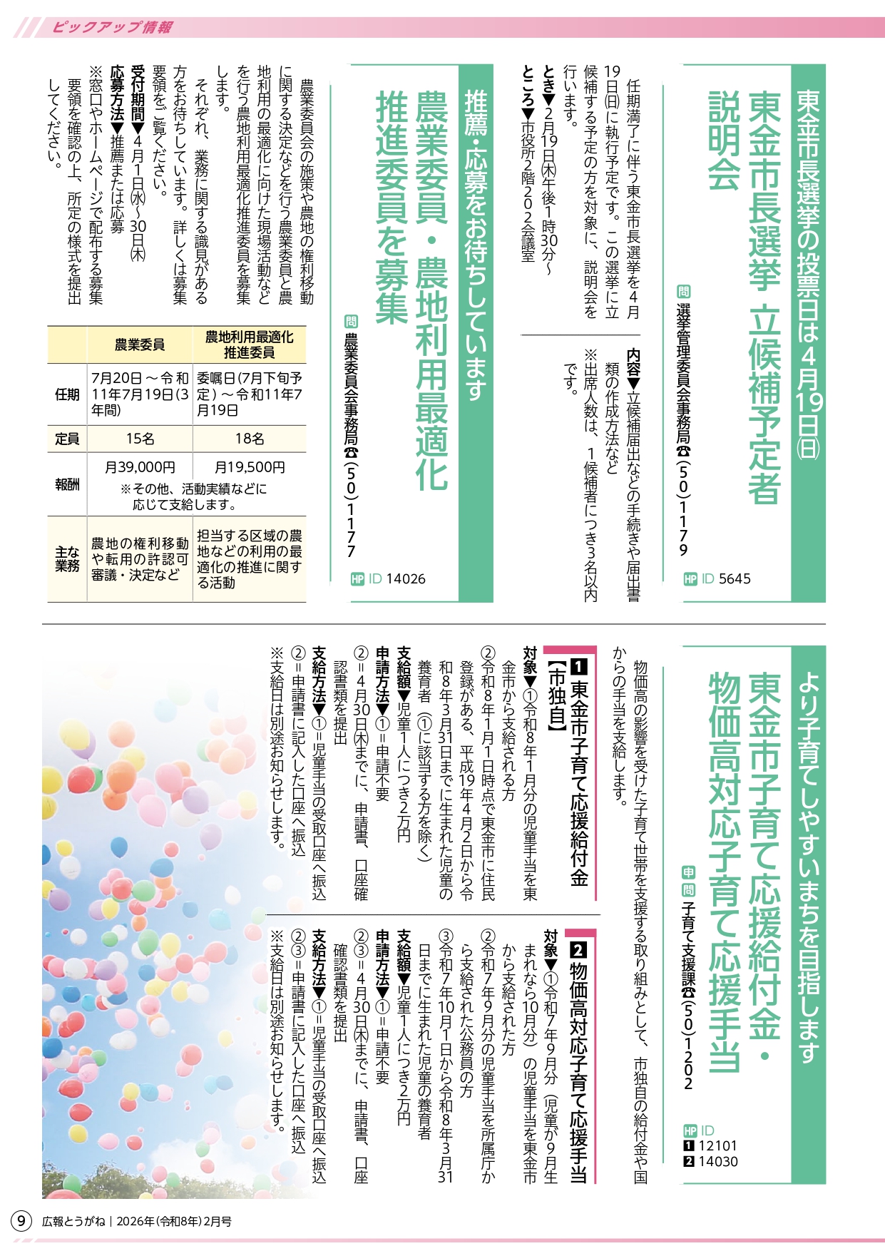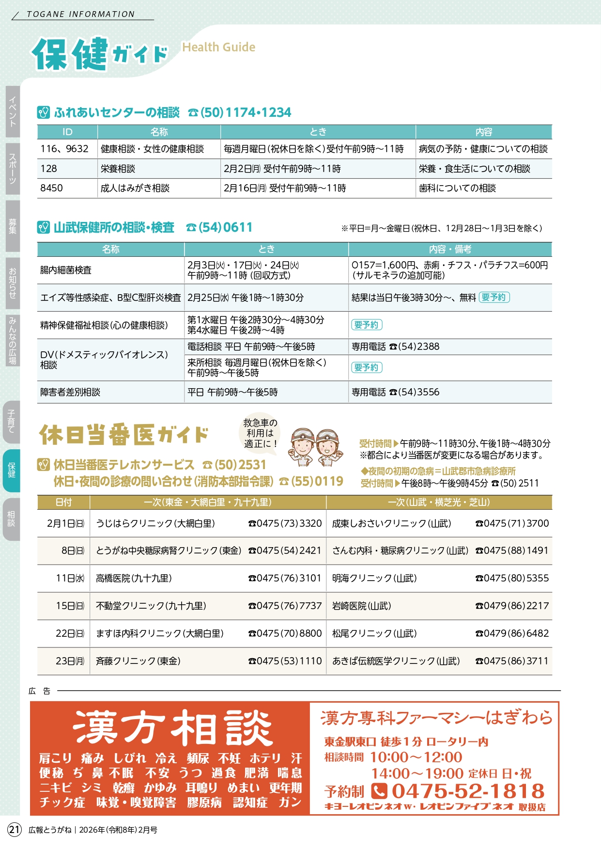 広報 「とうがね」2月号 発行元 東金市企画政策部秘書広報課広報広聴係 は