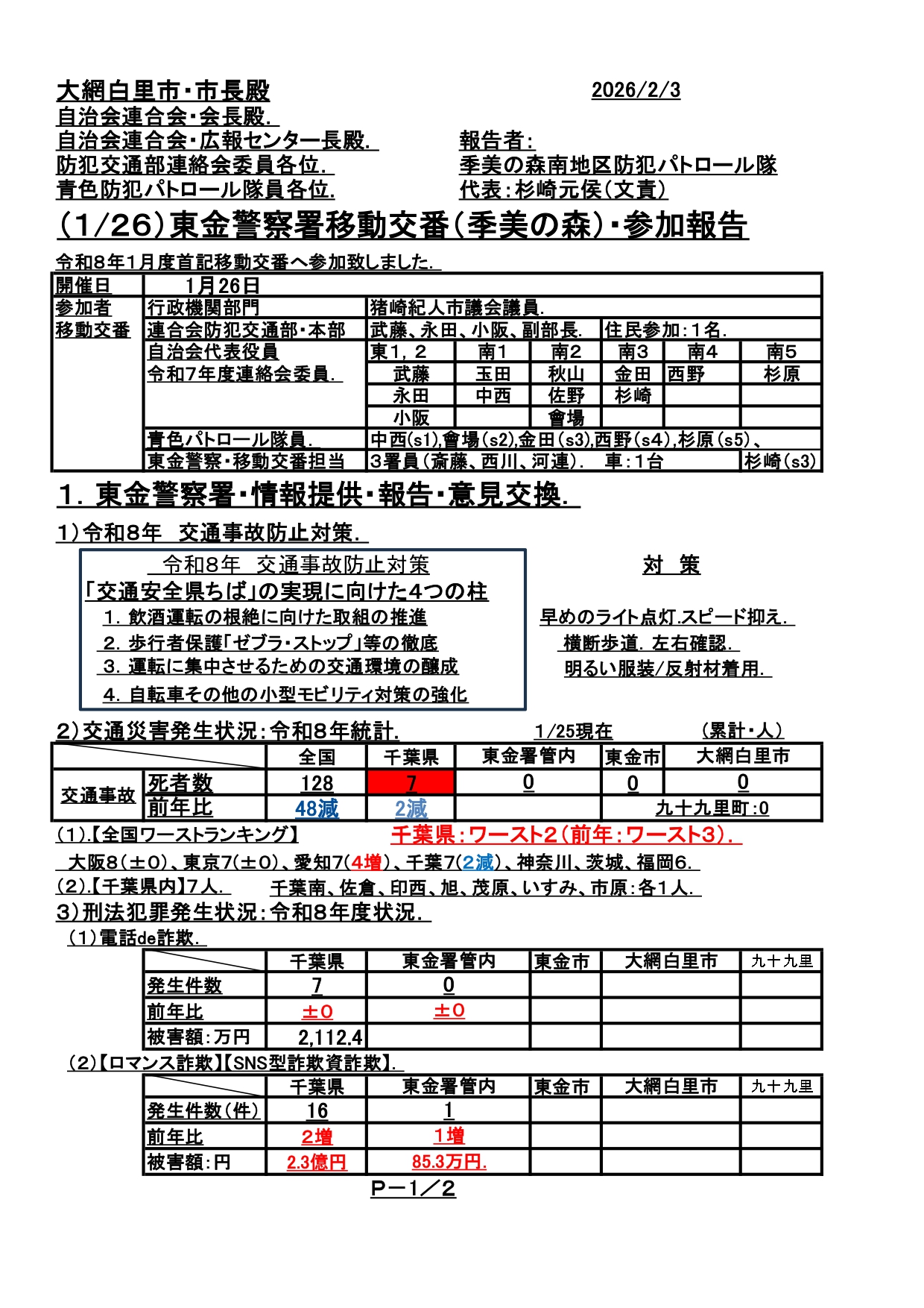 (1/26)東金警察署移動交番(季美の森)・参加報告 は