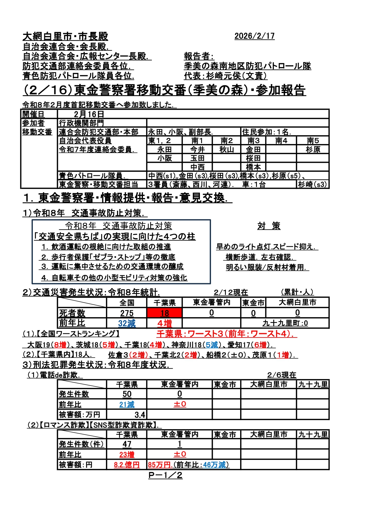 (2/16)東金警察署移動交番(季美の森)・参加報告