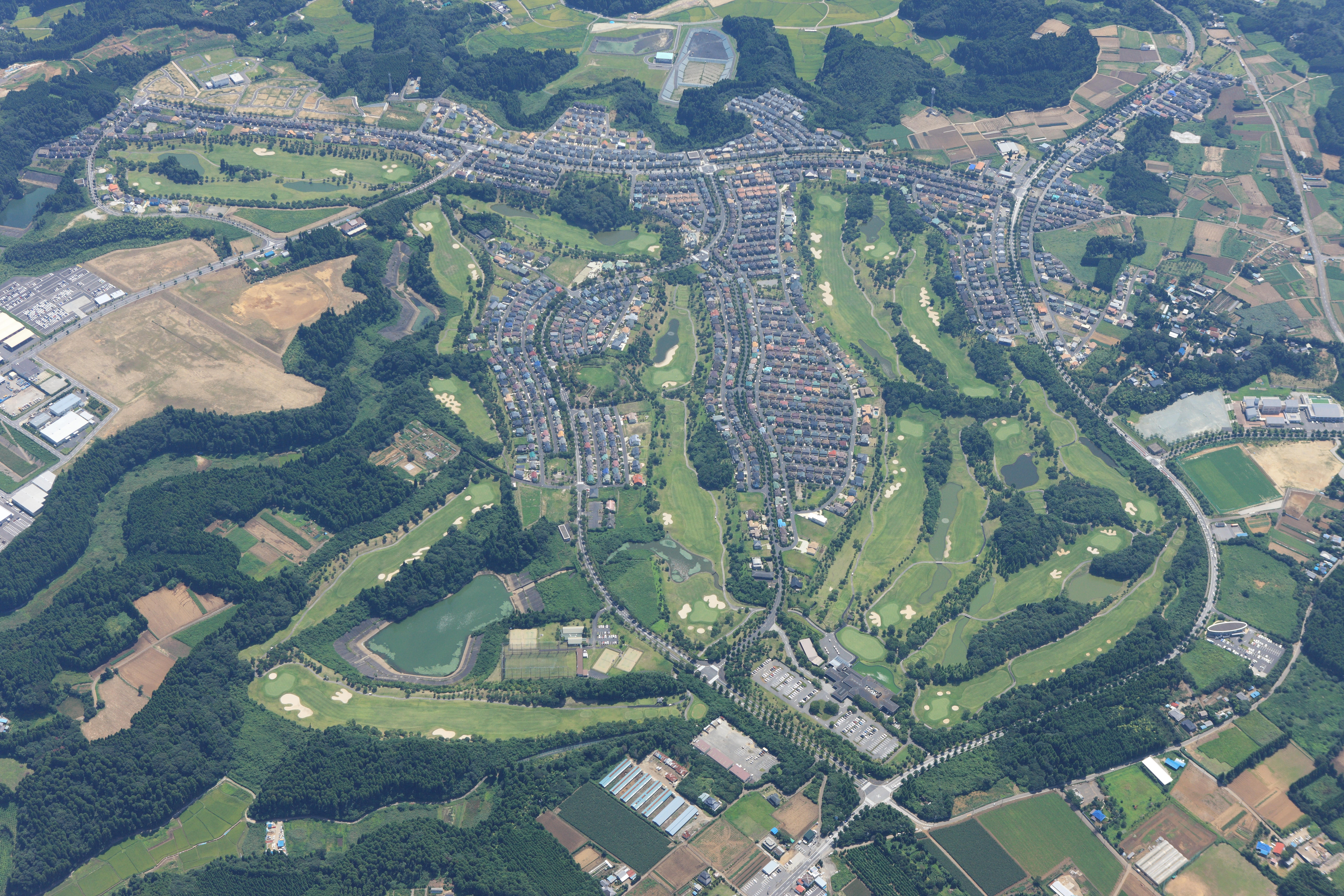 以前このエリアは、深い谷が2本と尾根が数本ある自然豊かな森でした。谷には小川が流れ、畑地の部分もありました。その尾根の上部をカットして深い谷を埋め造成したのが、現在の姿です。地盤の良い尾根部が住宅地に。盛り土した谷部がゴルフコースとなり、住宅地からはゴルフコースを見降ろす眺めとなっています。